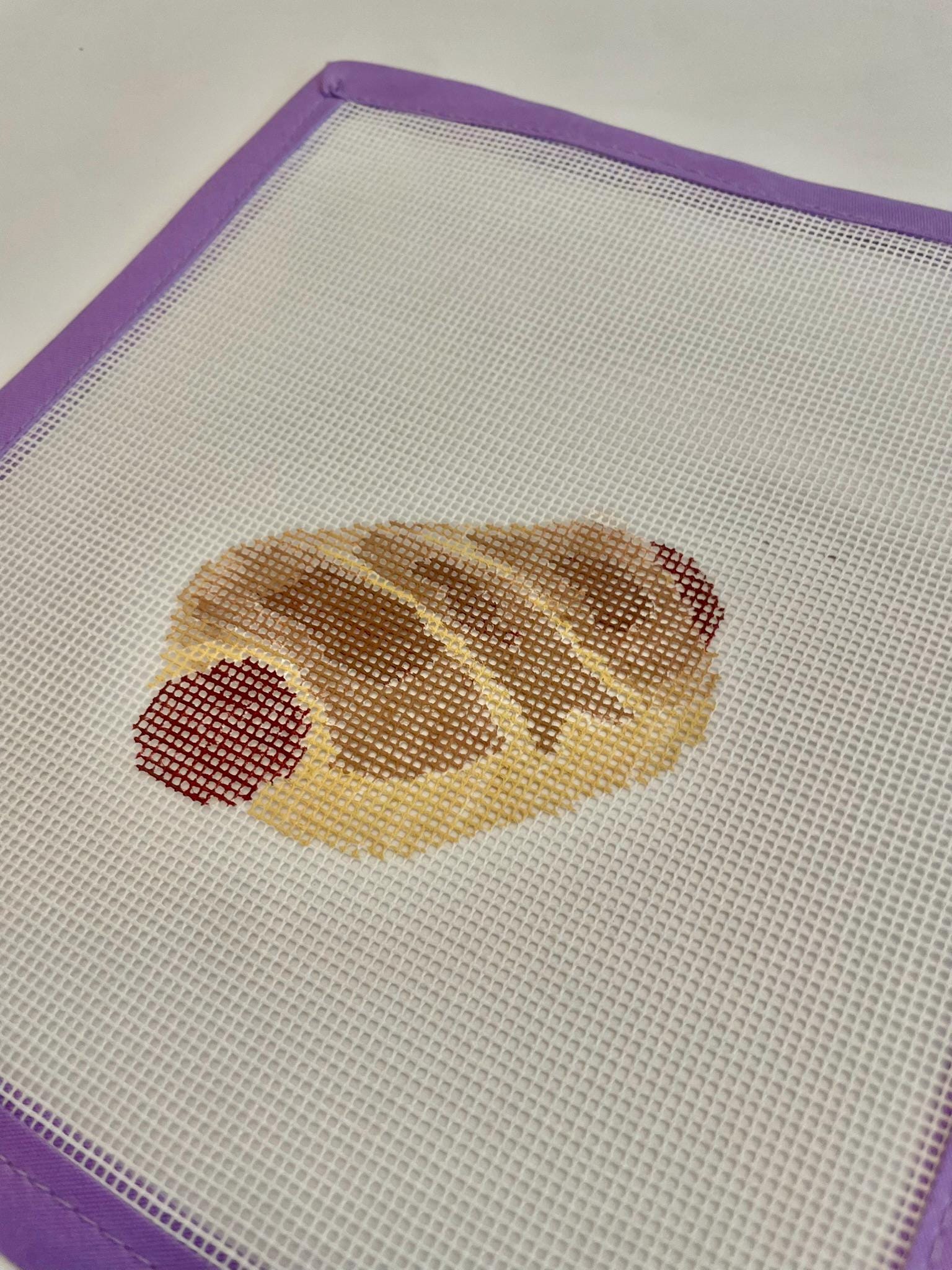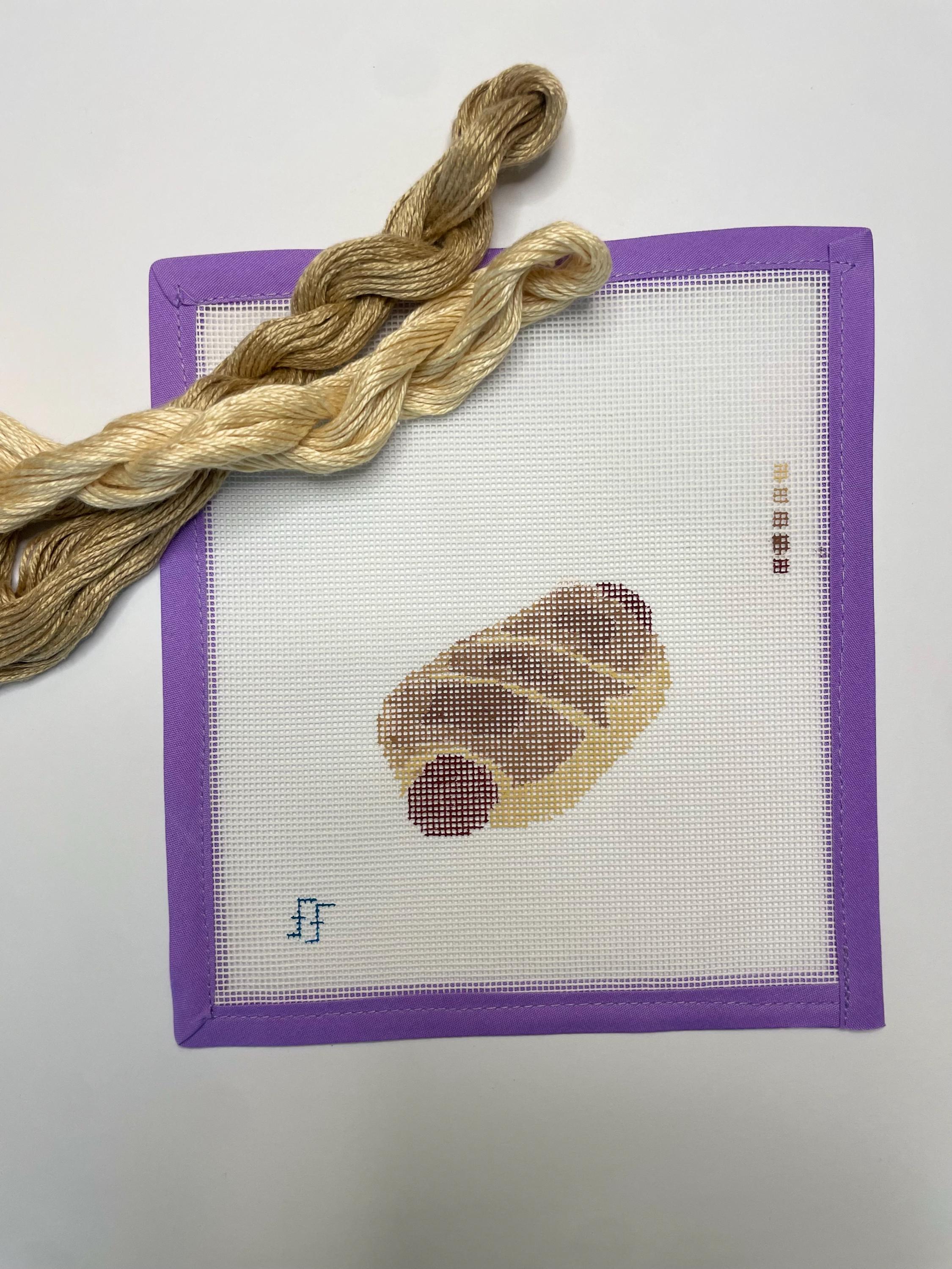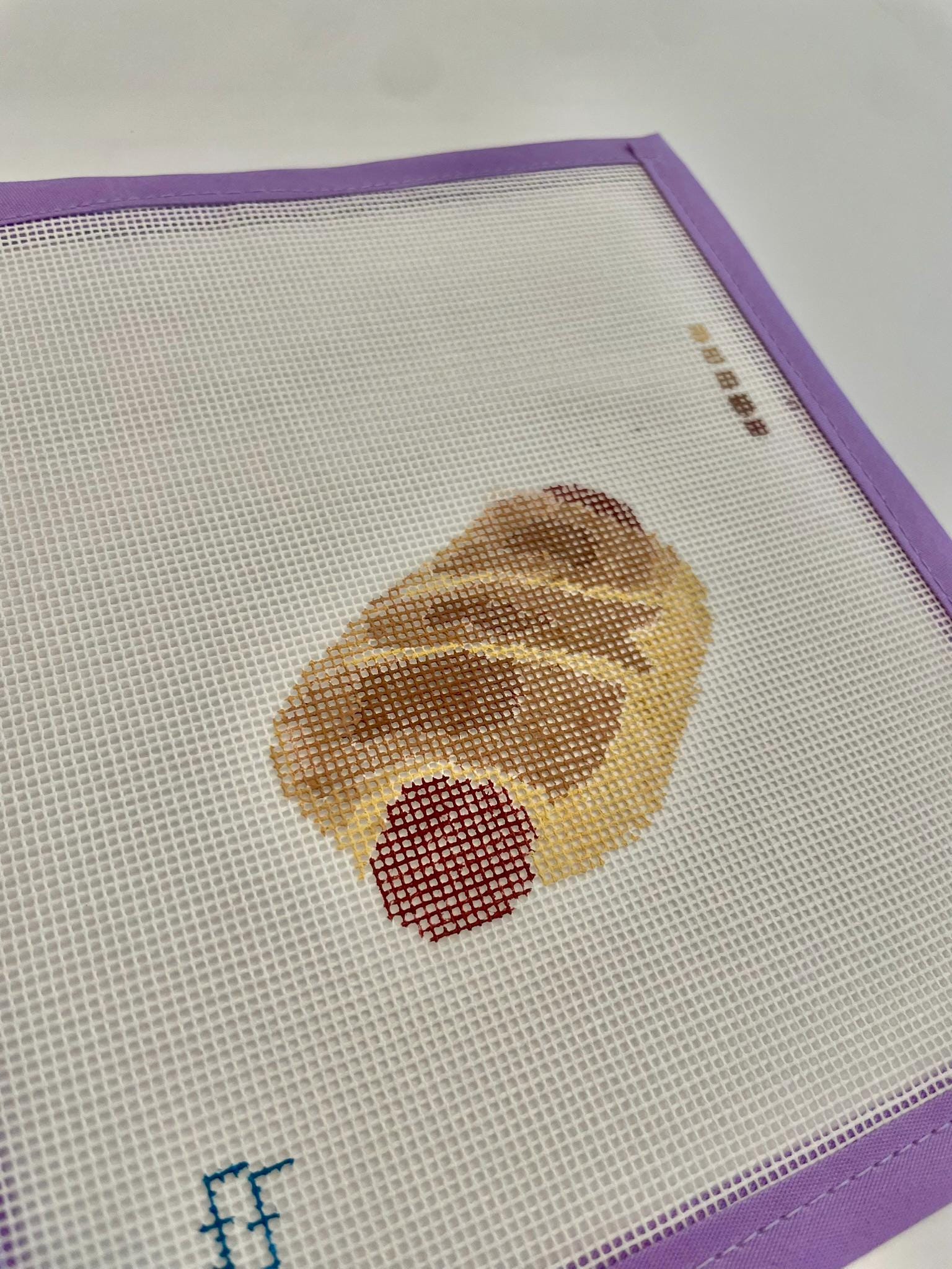 The Meat Kolache Needlepoint Canvas by Frick Frack is a tribute to every Texan’s favorite road trip breakfast. This miniature hand-painted design features a golden-brown pastry filled with savory sausage, painted with rich detail and charm.
