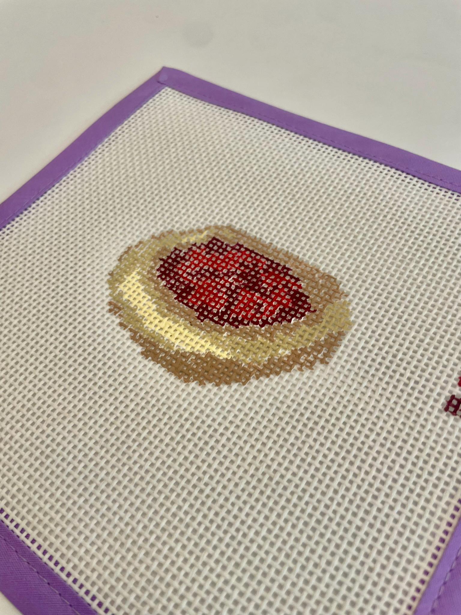The Fruit Kolache Needlepoint Canvas by Frick Frack is a sugary nod to Central Texas bakeries, small-town church potlucks, and generations of Czech-American tradition. This hand-painted mini canvas features a golden pastry with a bright fruit center — choose your favorite flavor in your threads.