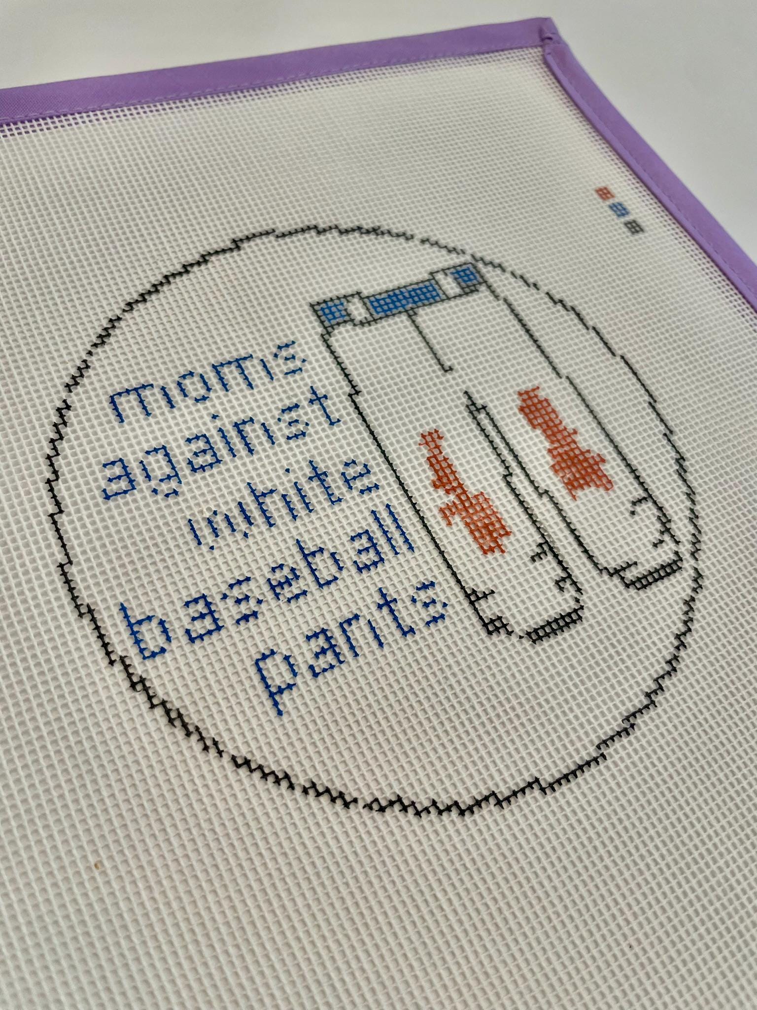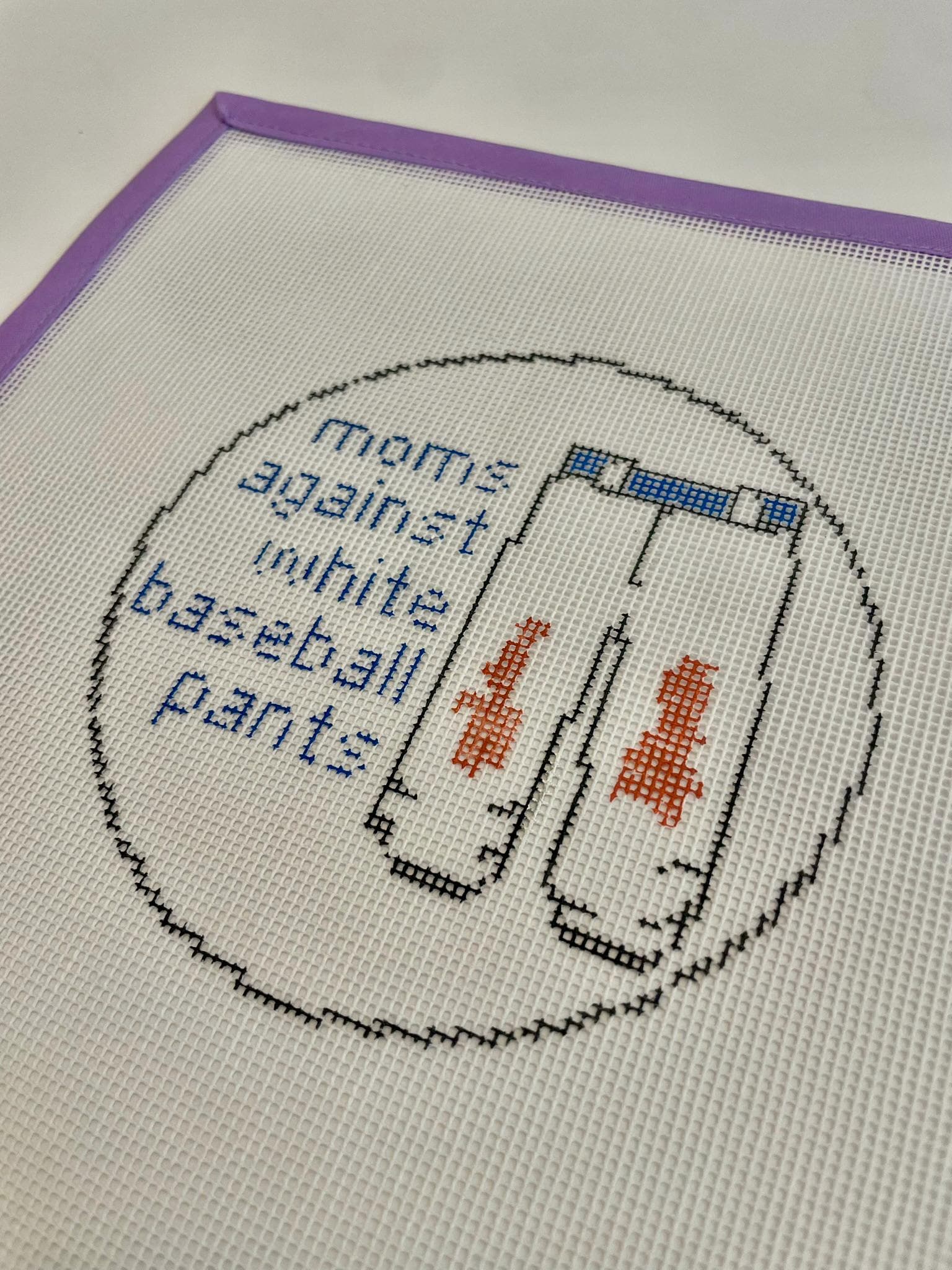 Because some battles are worth stitching for. This hand-painted needlepoint canvas is a hilarious nod to all the moms (and dads) who have fought the eternal war against red dirt stains on white baseball pants. Bold, sassy, and just the right size at 4.5 by 4.5 inches, it’s perfect for your sports bag, Christmas tree, or framed as a cheeky wall accent.