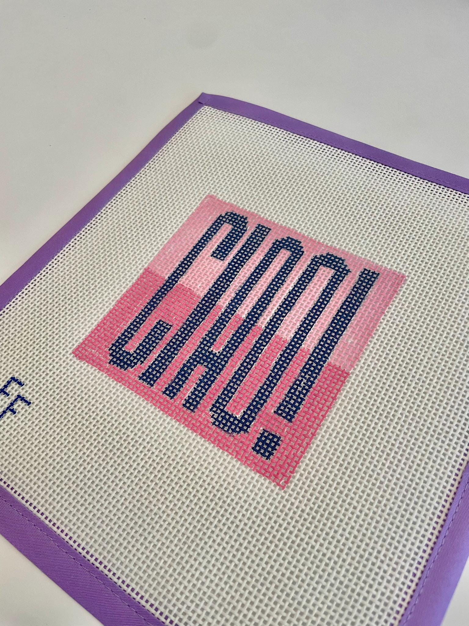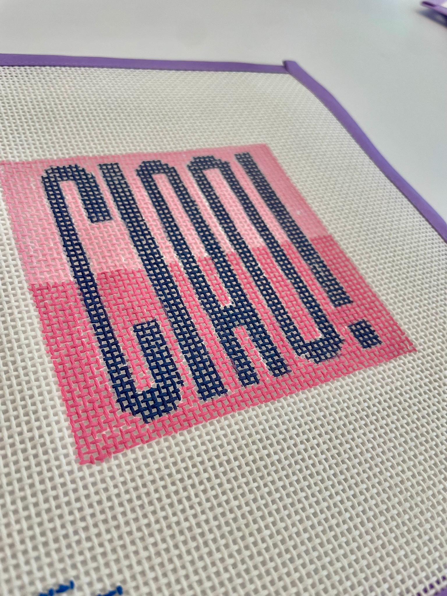 Say hello (or goodbye) in style with this hand-painted needlepoint canvas featuring the word “Ciao!” in large, bold typography. At 4 by 4 inches on 13 mesh, it’s the perfect size for a coaster, small wall accent, or fun gift that stitches up quickly and adds a pop of personality.
