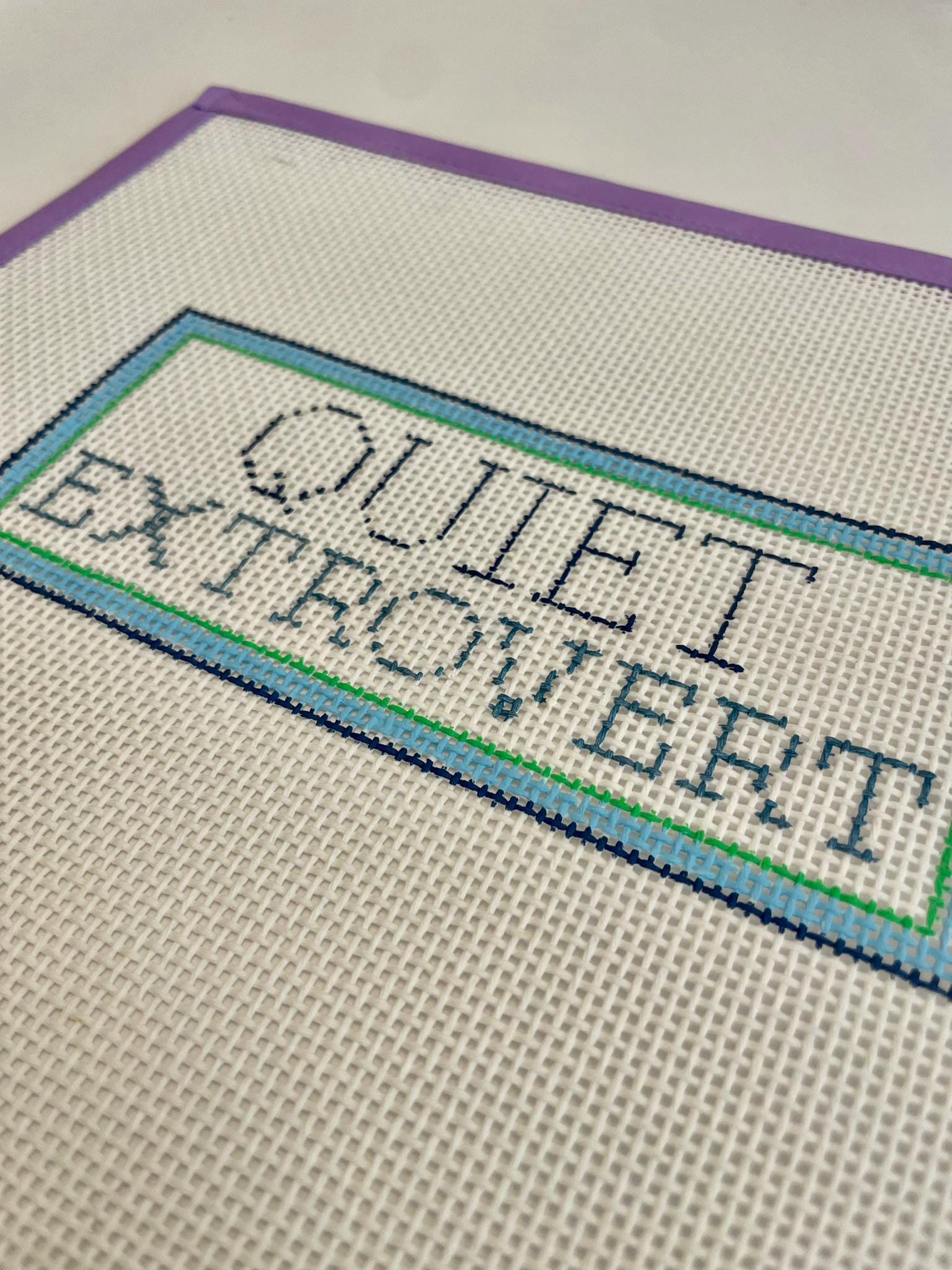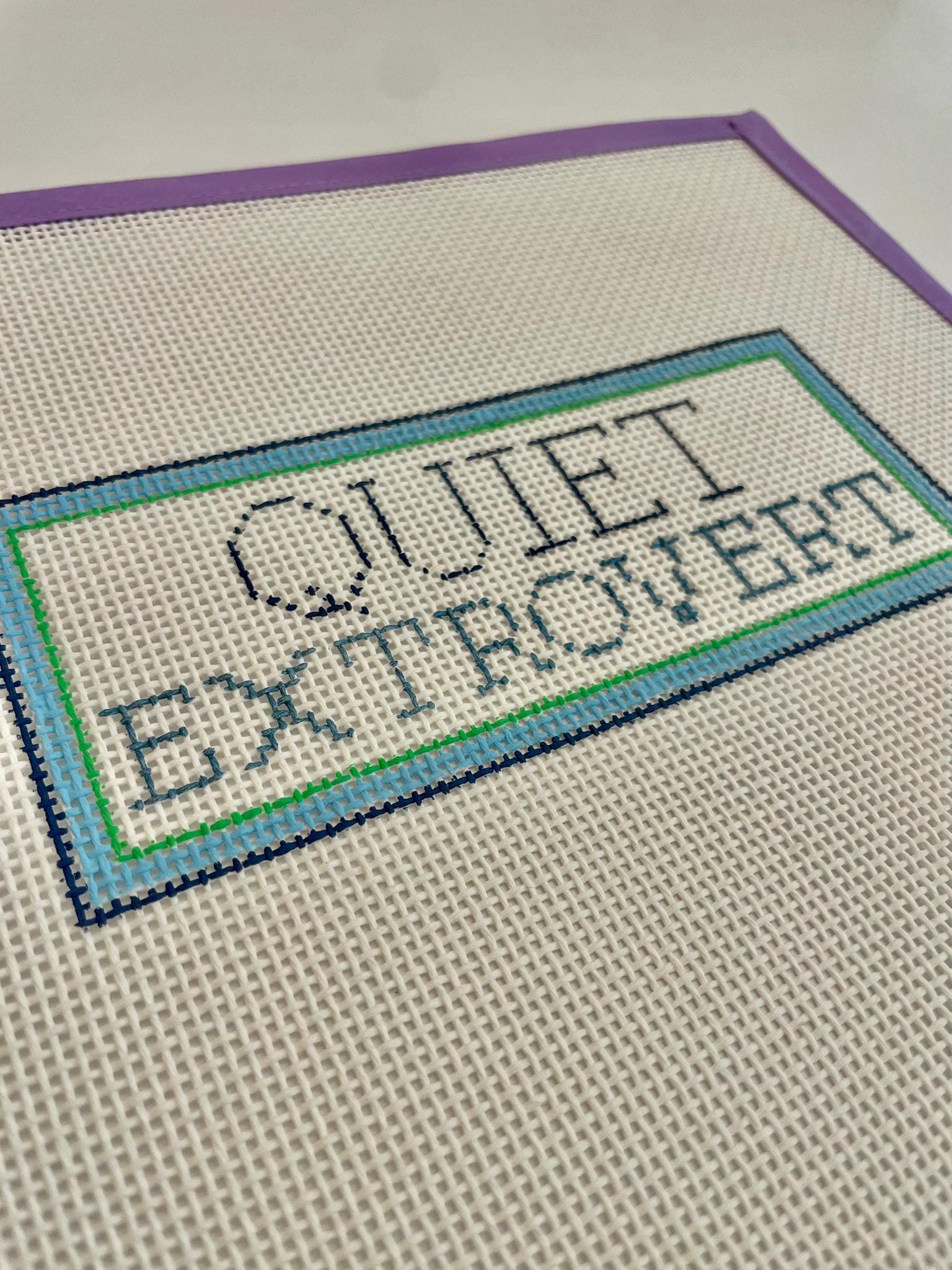 Perfect for the thoughtful social butterfly, this hand-painted needlepoint canvas celebrates those who love being around people but prefer to observe quietly. Featuring a sleek, modern design, it’s ideal for needlepoint home décor, gifting, or adding personality to your stitching collection.