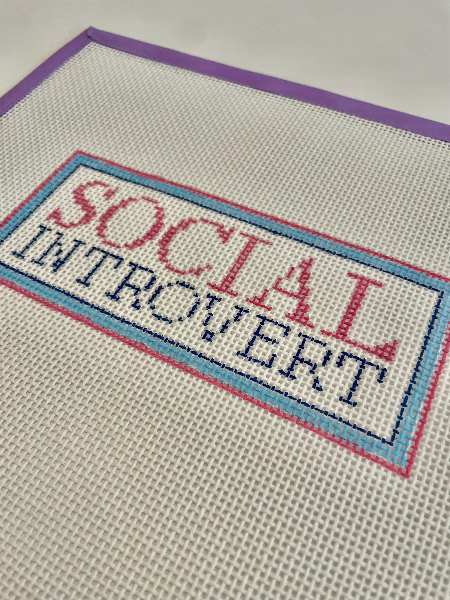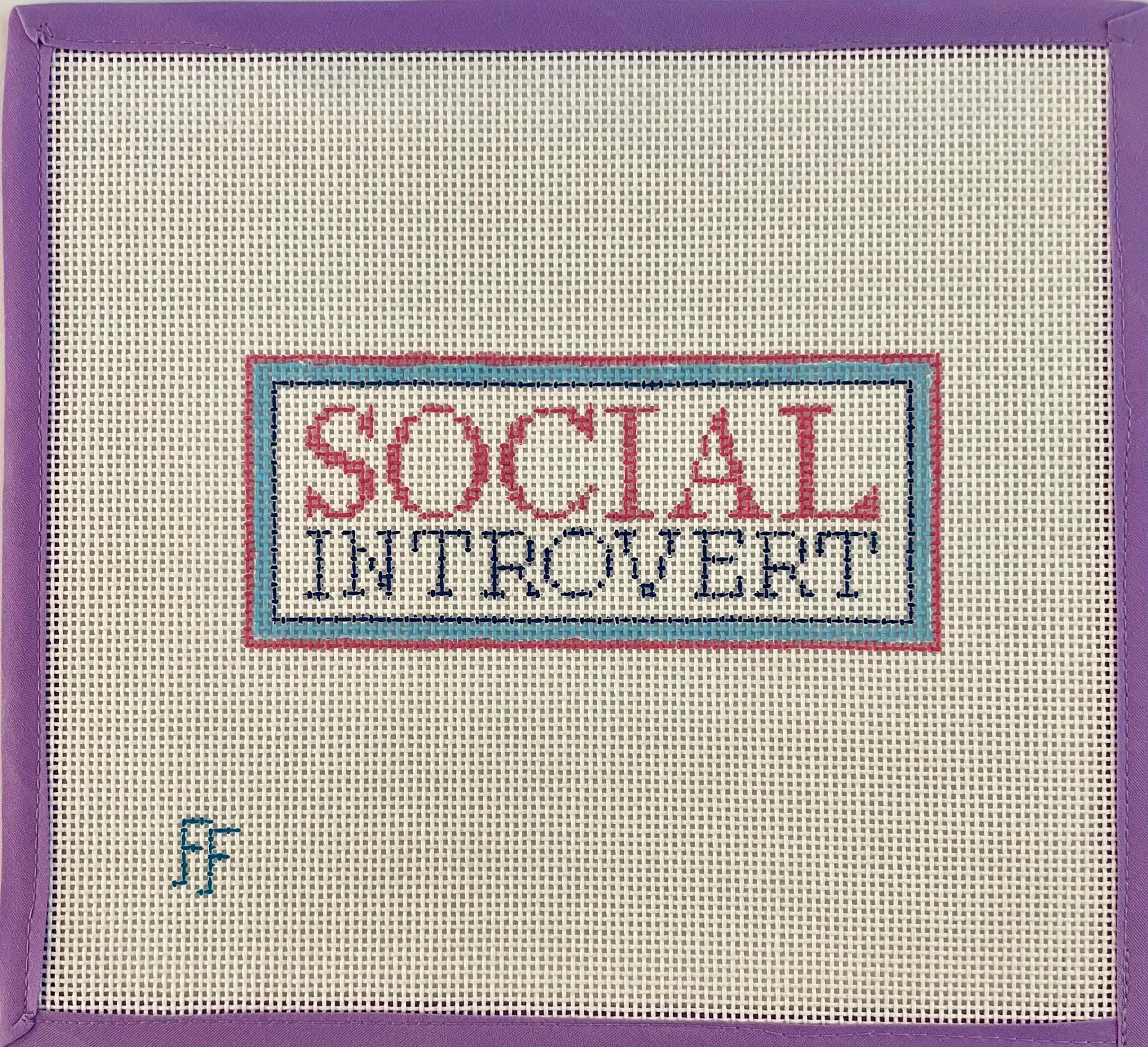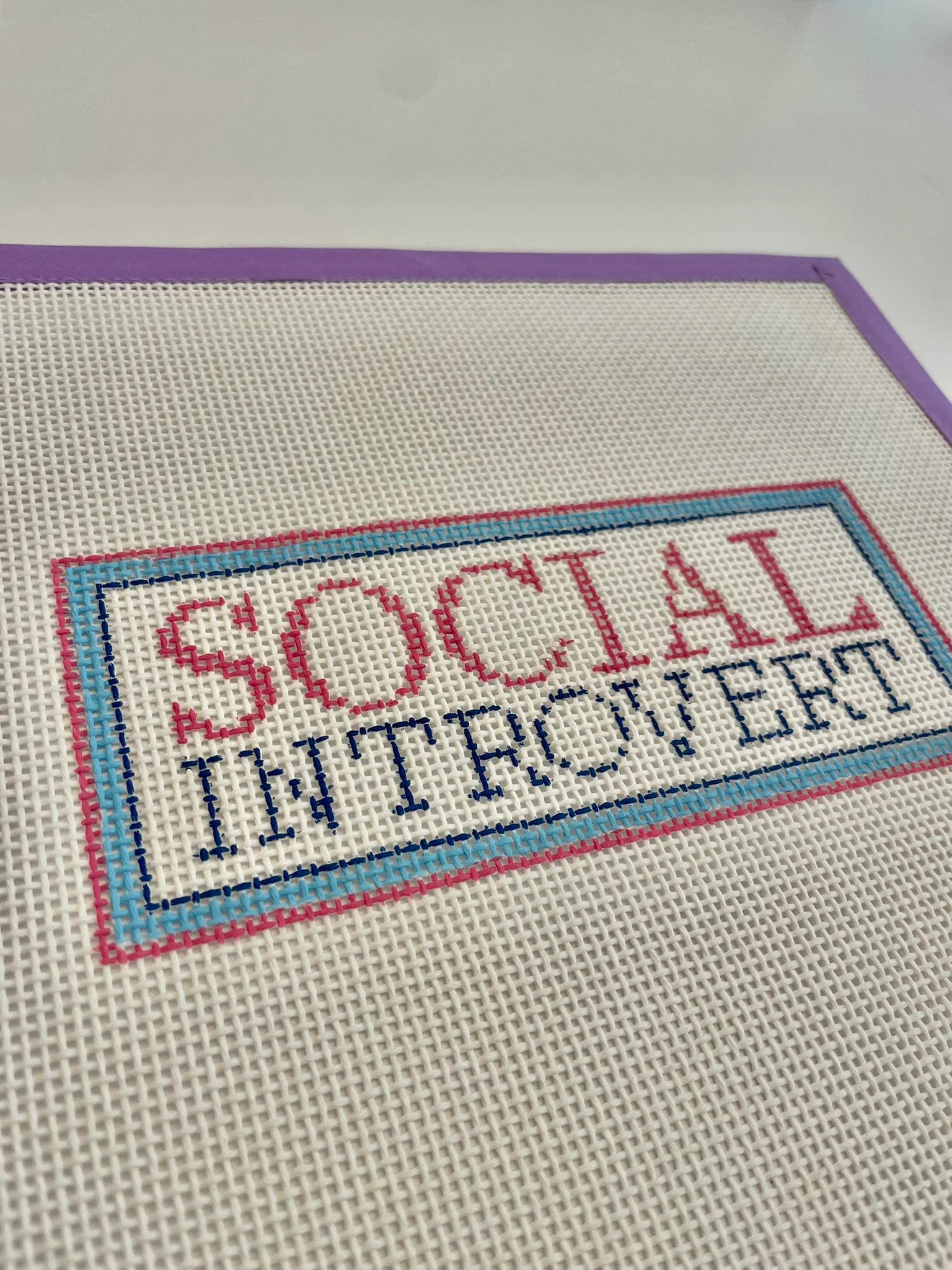 Celebrate the balance of connection and solitude with this hand-painted needlepoint canvas. Perfect for those who love spending time with people but cherish quiet, solo moments at home. This modern, playful design adds personality to needlepoint home décor, makes a thoughtful gift, or is a fun personal stitching project.