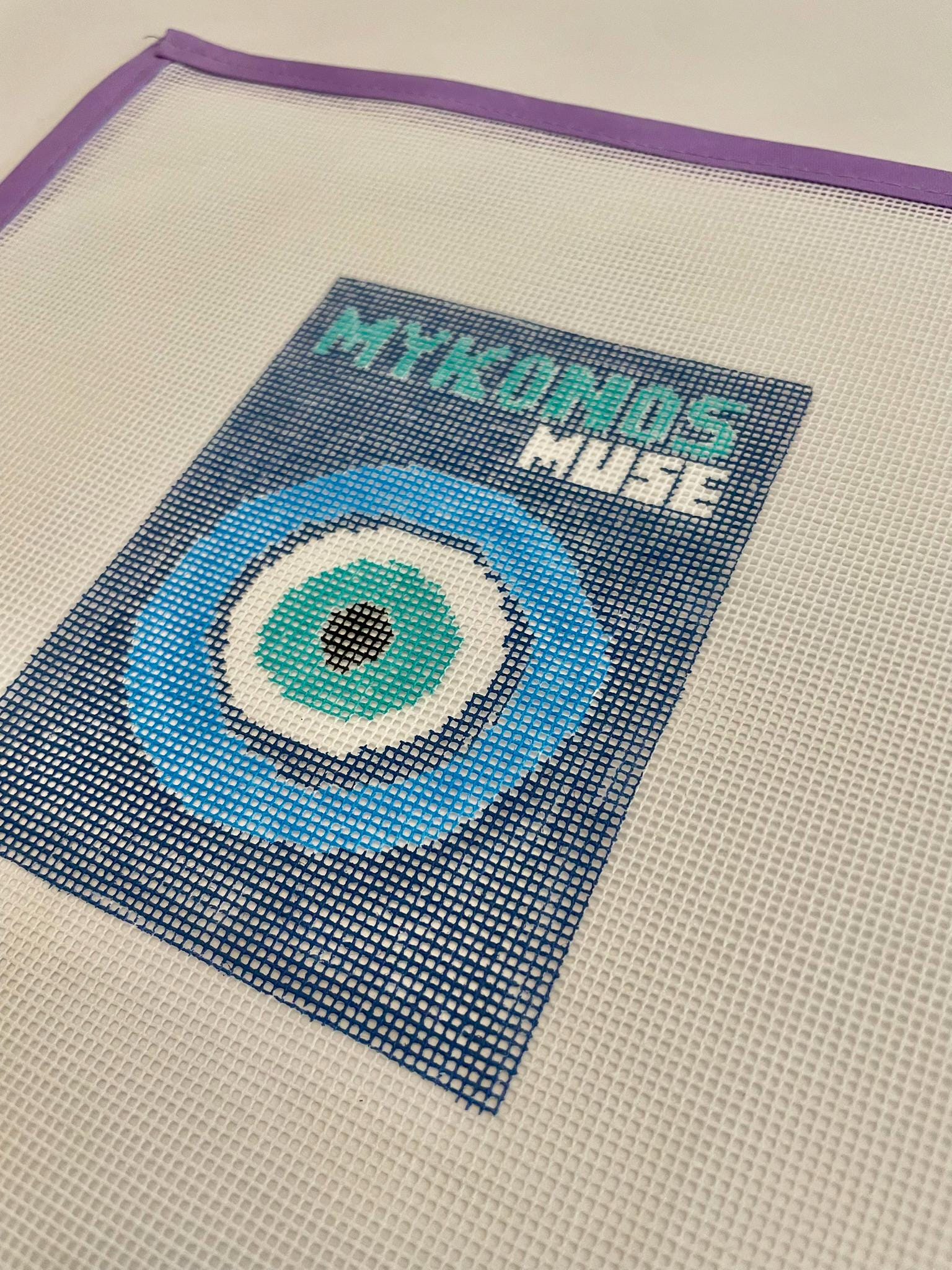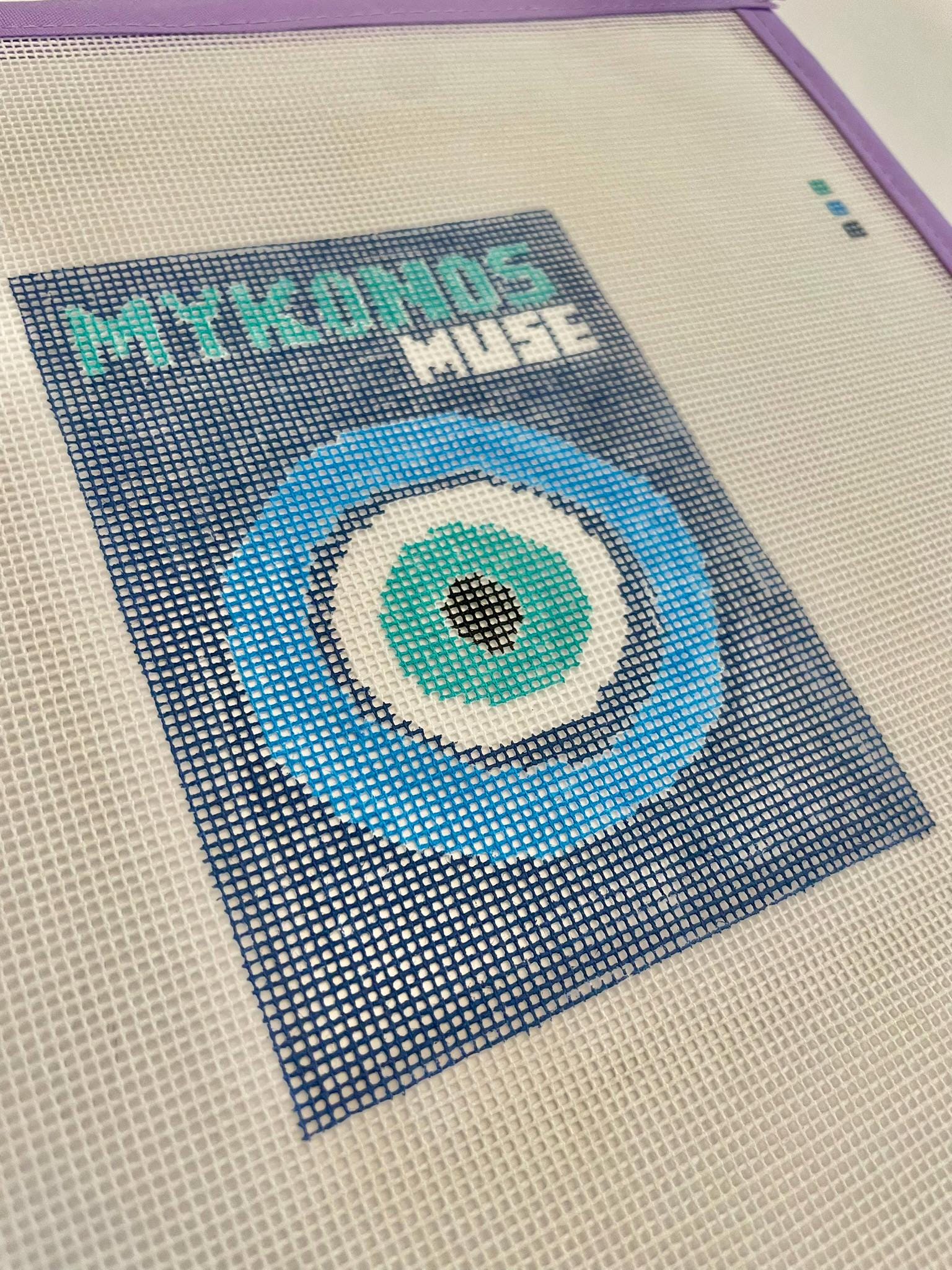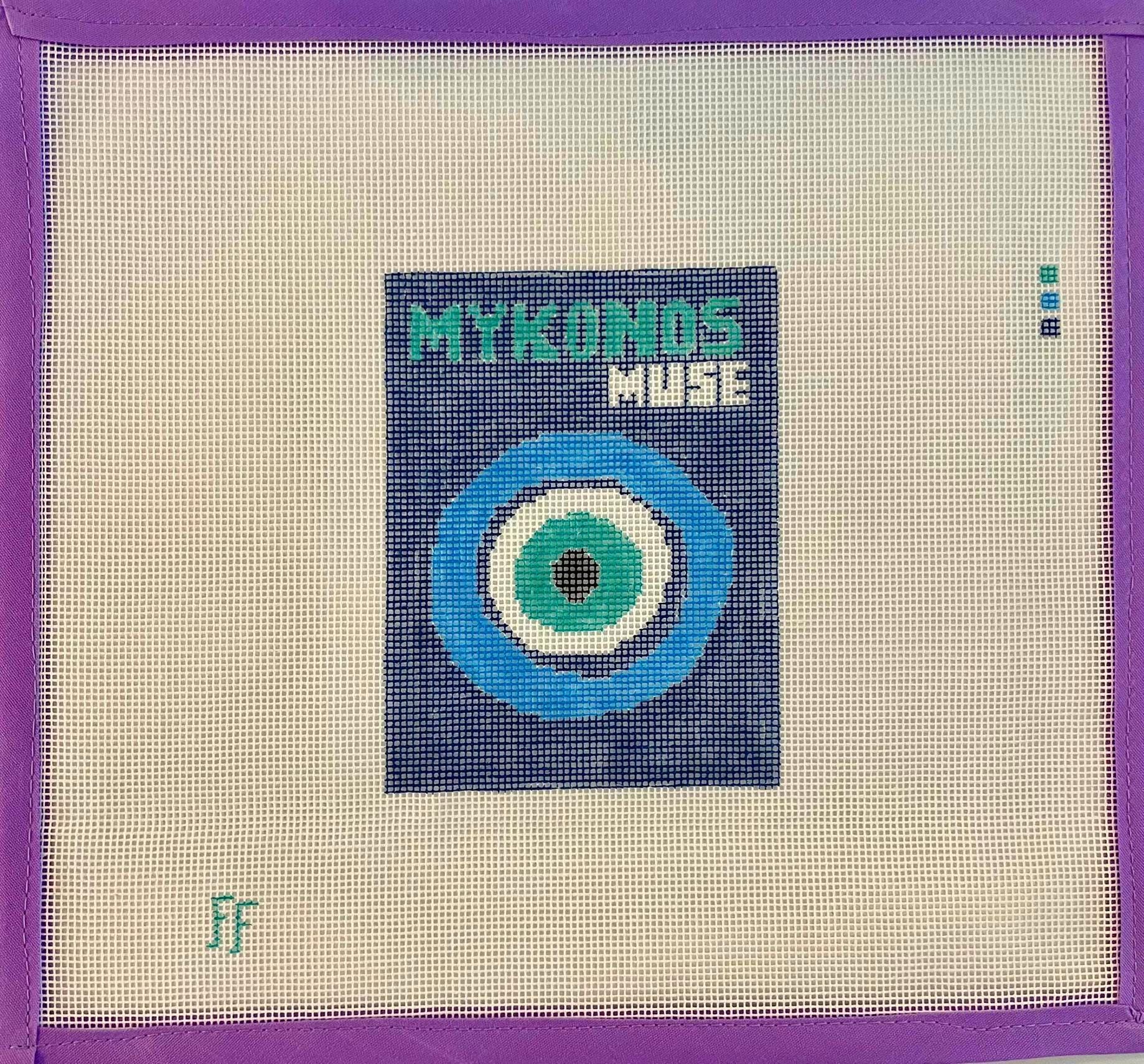 Bring a touch of chic, wanderlust-inspired style to your stitching with this hand-painted needlepoint canvas. Featuring the phrase “Mykonos Muse” on a book-inspired design, it’s a playful nod to luxurious Assouline coffee table books and stylish travel décor. Perfect for needlepoint home décor, gifting, or personal projects that celebrate travel, style, and sophistication.