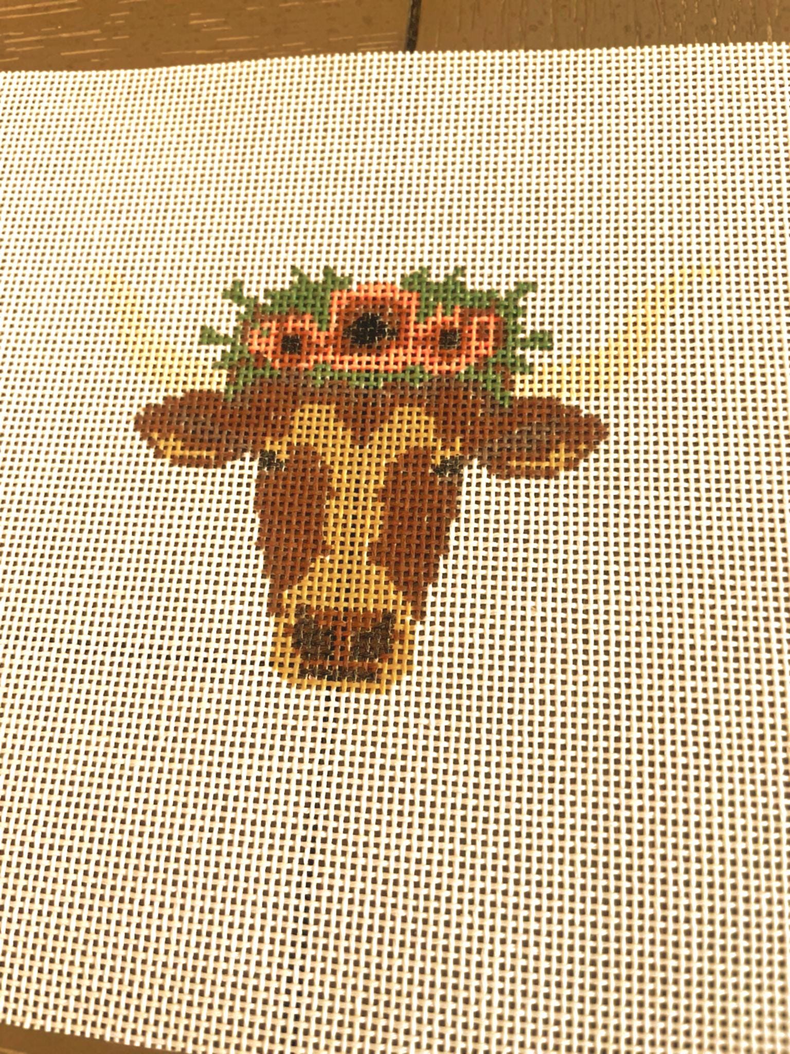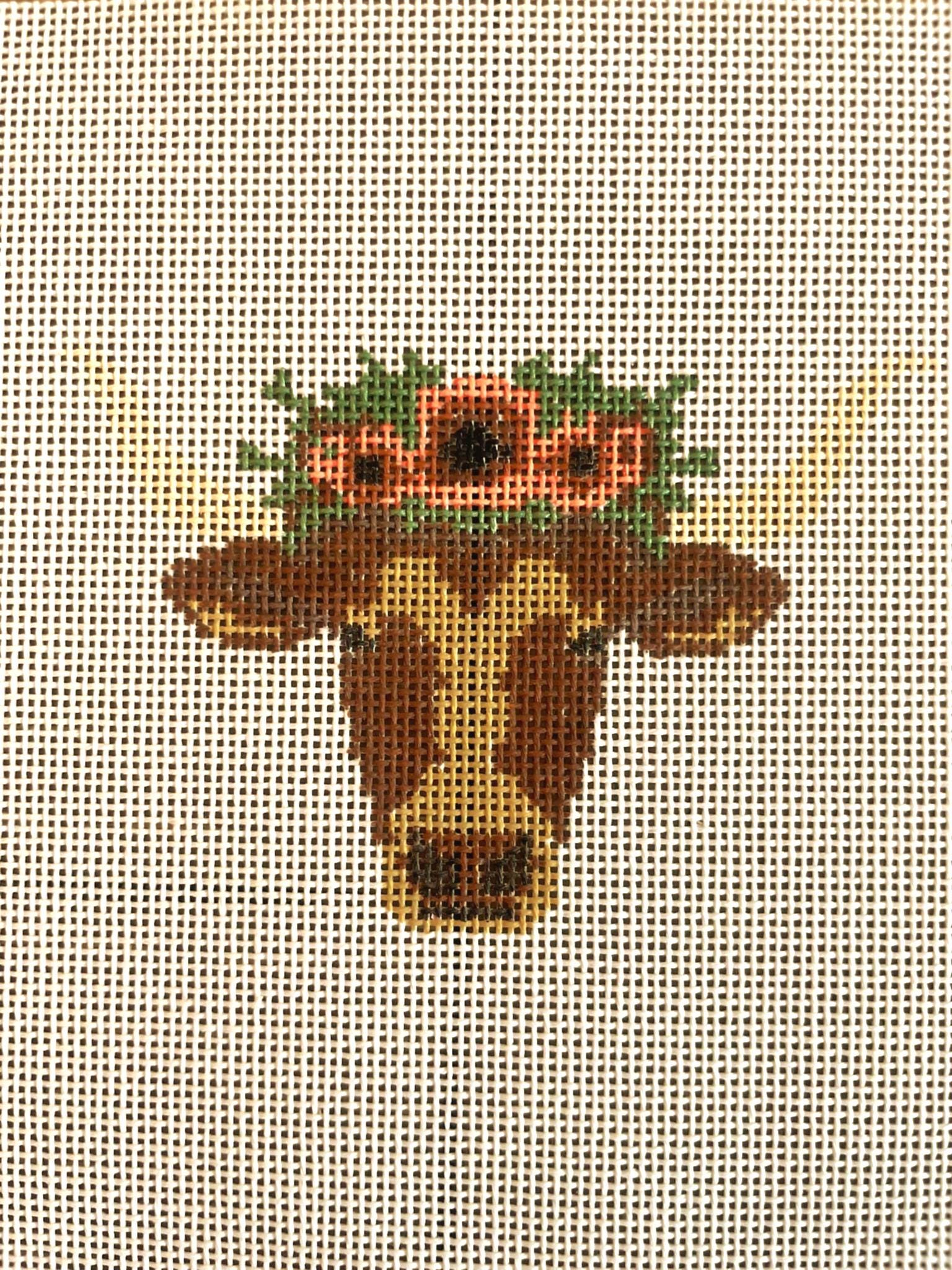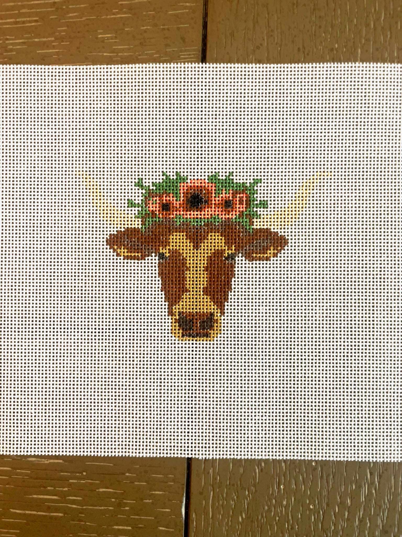 Celebrate Texas style with this charming hand-painted needlepoint canvas featuring a Longhorn adorned with a fall floral crown. A perfect mix of rustic charm and seasonal beauty, this canvas makes a fun project for stitchers of all levels.