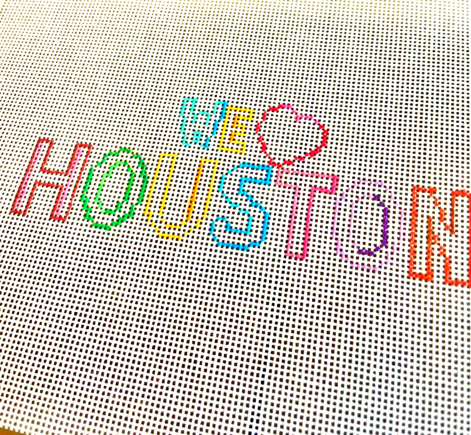 Celebrate Houston with this hand-painted I ❤️ Houston needlepoint canvas, inspired by the city’s iconic sign. This colorful 18 mesh canvas is perfect for stitchers of all levels and makes a fun small project to show your Houston pride.