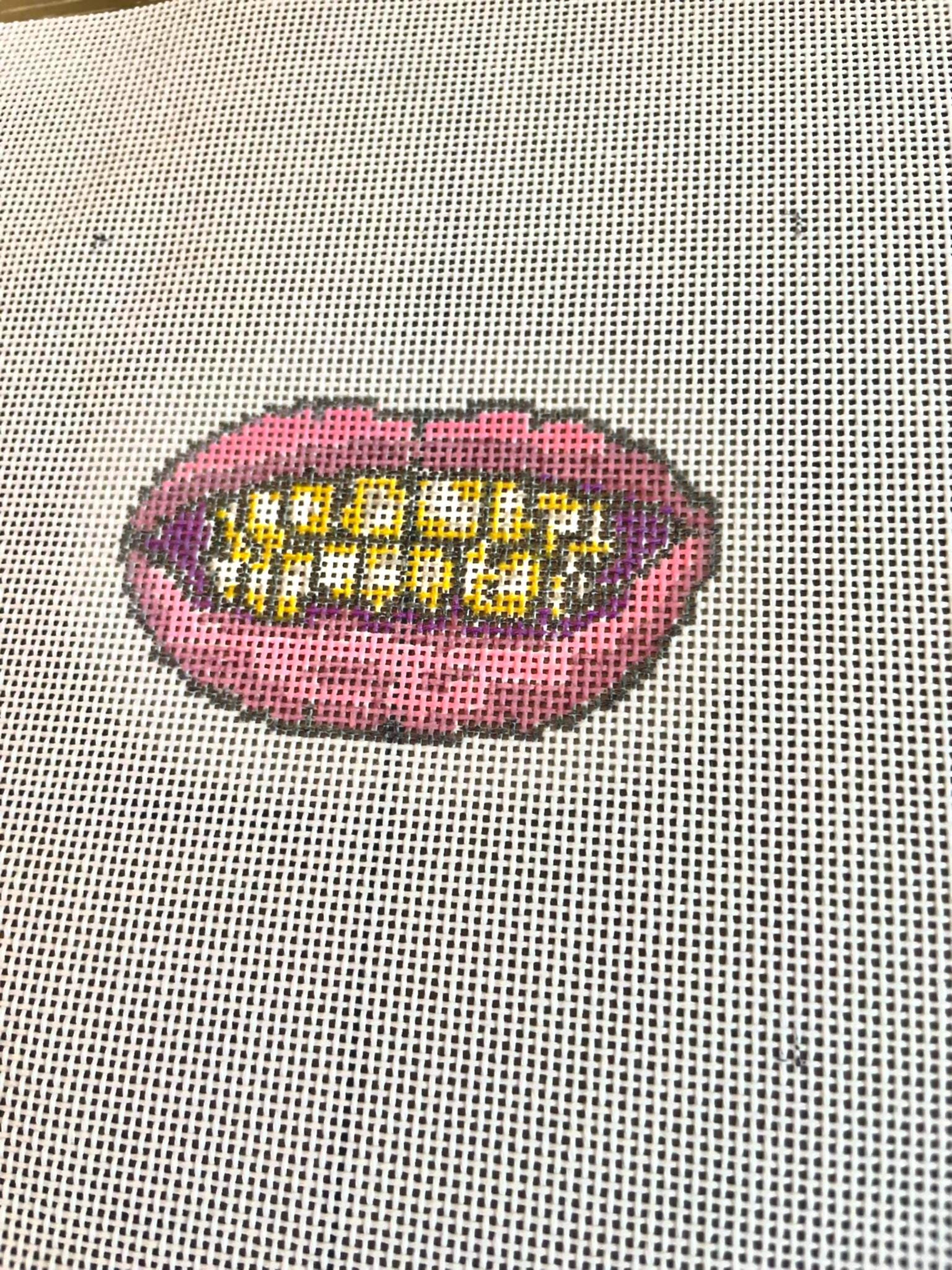 Show off some sparkle with this Grillz needlepoint canvas, inspired by Houston’s hip hop culture and the iconic style made famous by Paul Wall. Hand-painted on 18 mesh Zweigart mono deluxe canvas, this 4x4” design is perfect as a coaster, small, or framed mini.