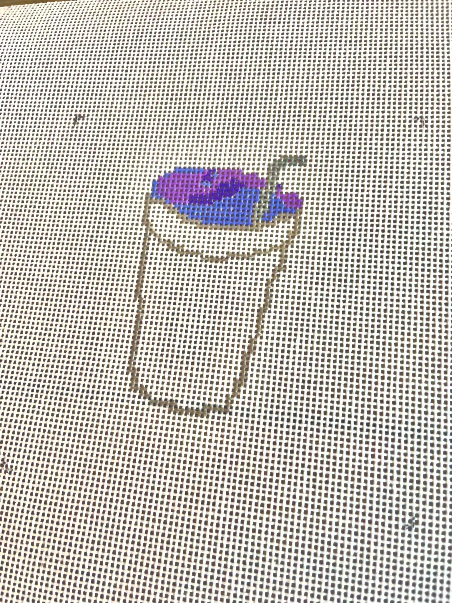 Pay tribute to Houston’s legendary rap culture with this Purple Drank (Sizzurp) needlepoint canvas. Hand-painted on 18 mesh Zweigart mono deluxe canvas, this 4x4” square is perfect for finishing as a coaster, mini, or framed art.