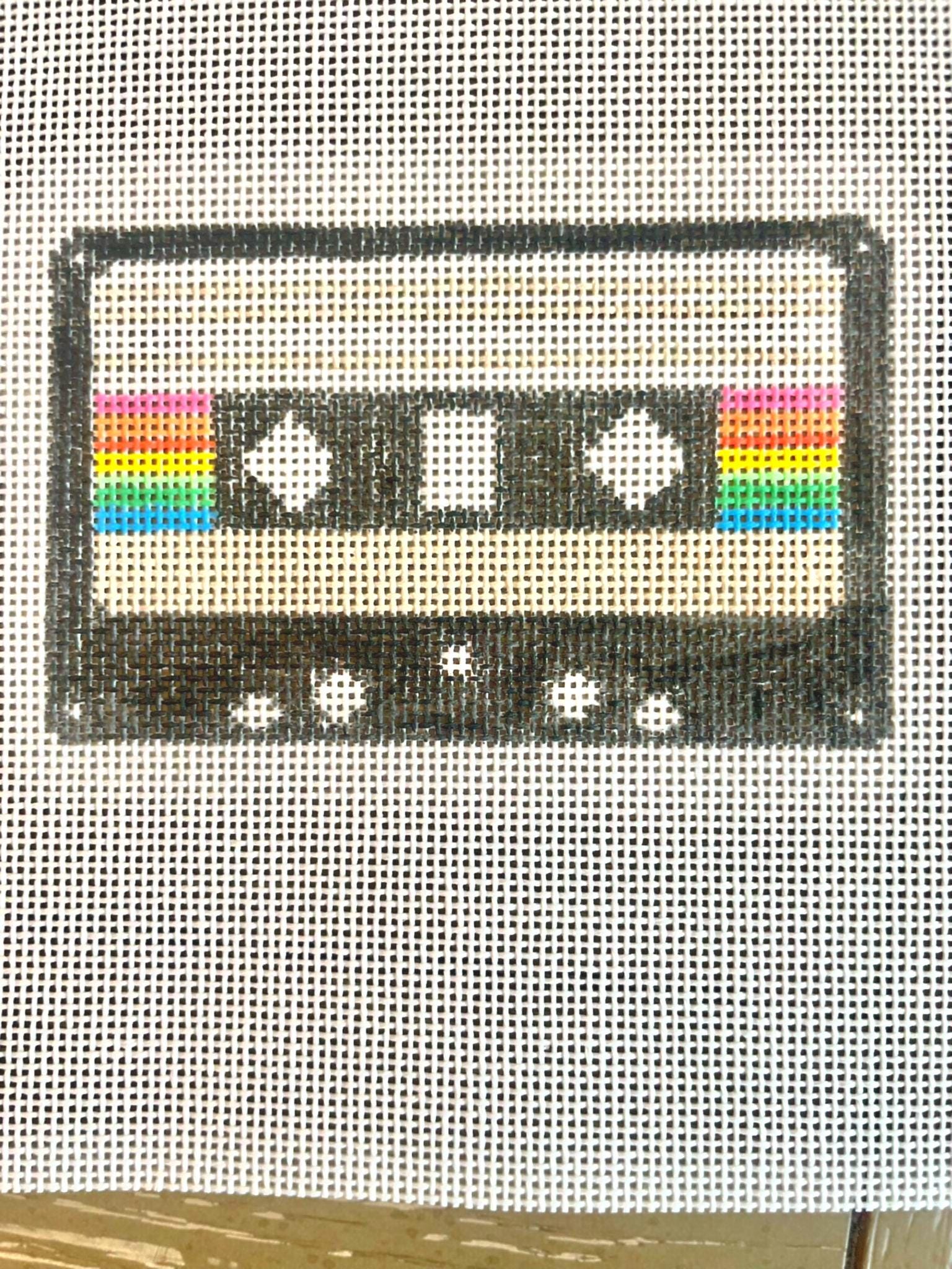 Take a trip back to the 1980s with this hand-painted retro cassette tape needlepoint canvas. This 4x4” design is perfect for stitchers of all levels and makes a fun DIY project or nostalgic gift for music lovers.