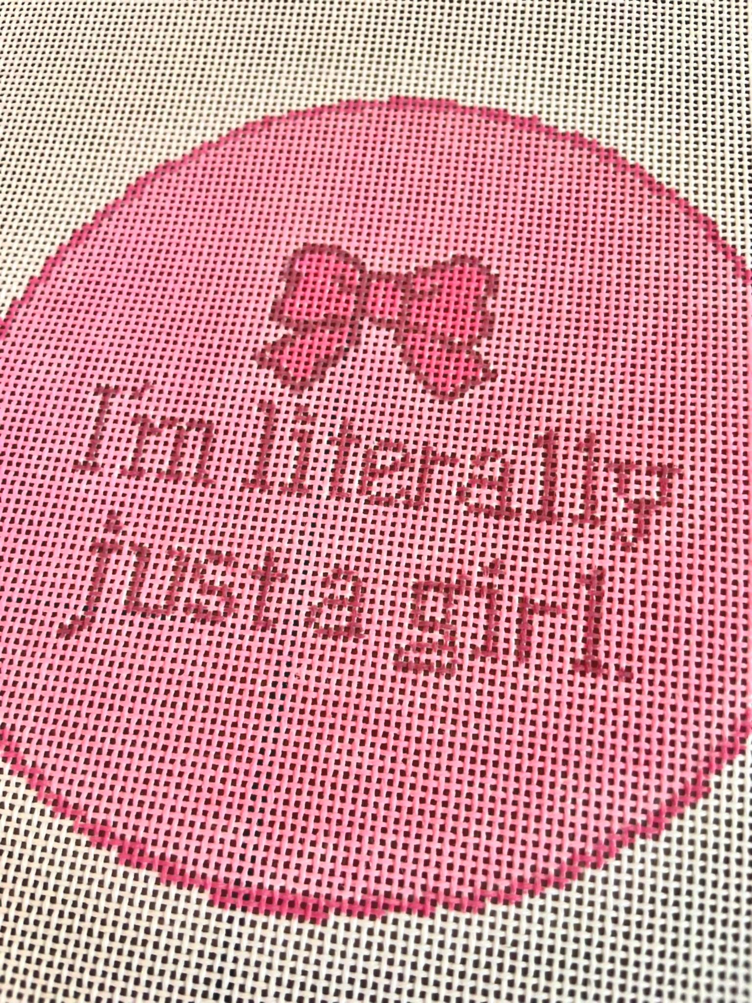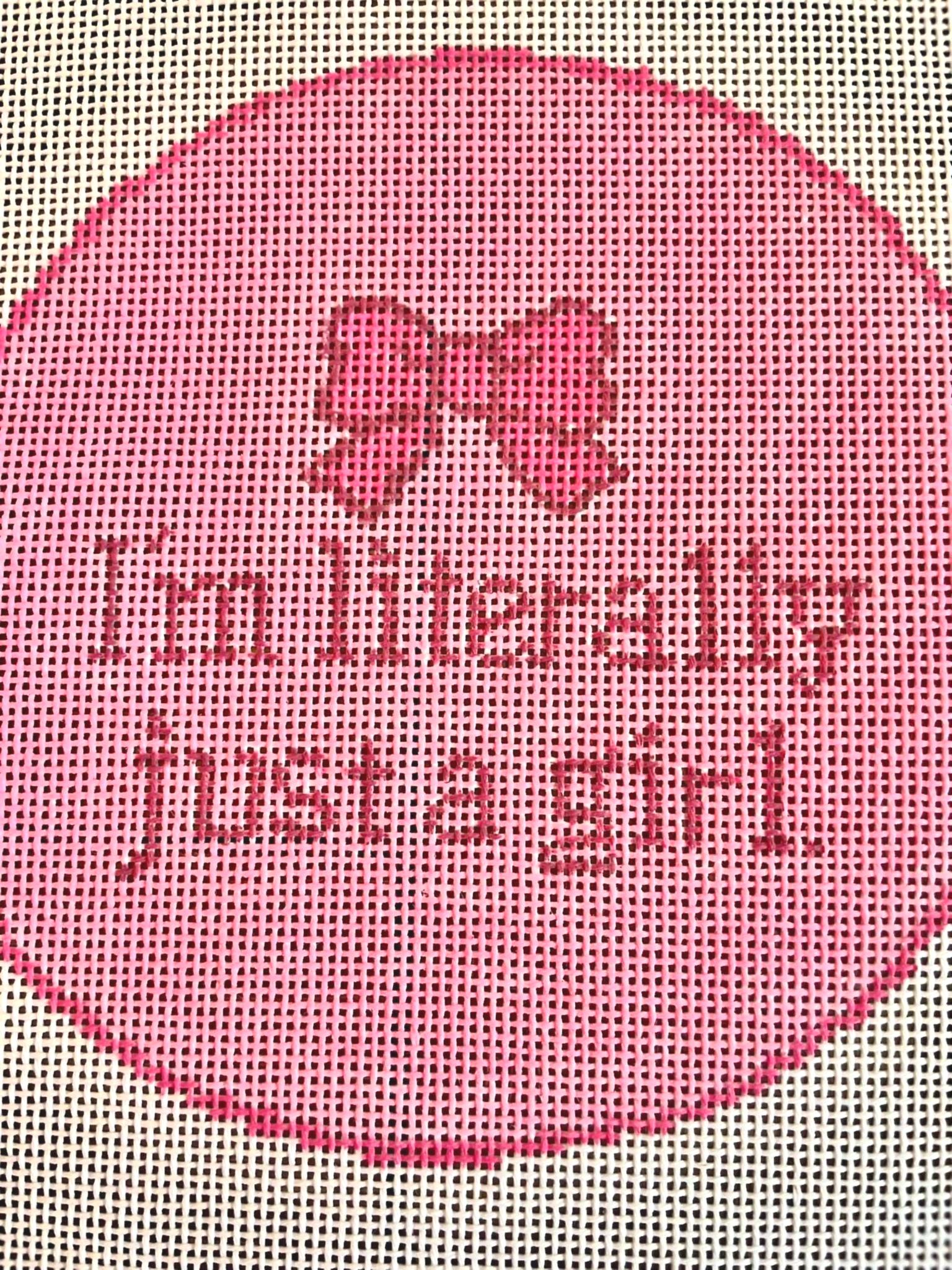 Celebrate humor and girly vibes with this hand-painted “I’m Literally Just a Girl” round needlepoint canvas. This 5” round design in pink tones is perfect for stitchers of all levels and makes a fun, lighthearted project or gift.