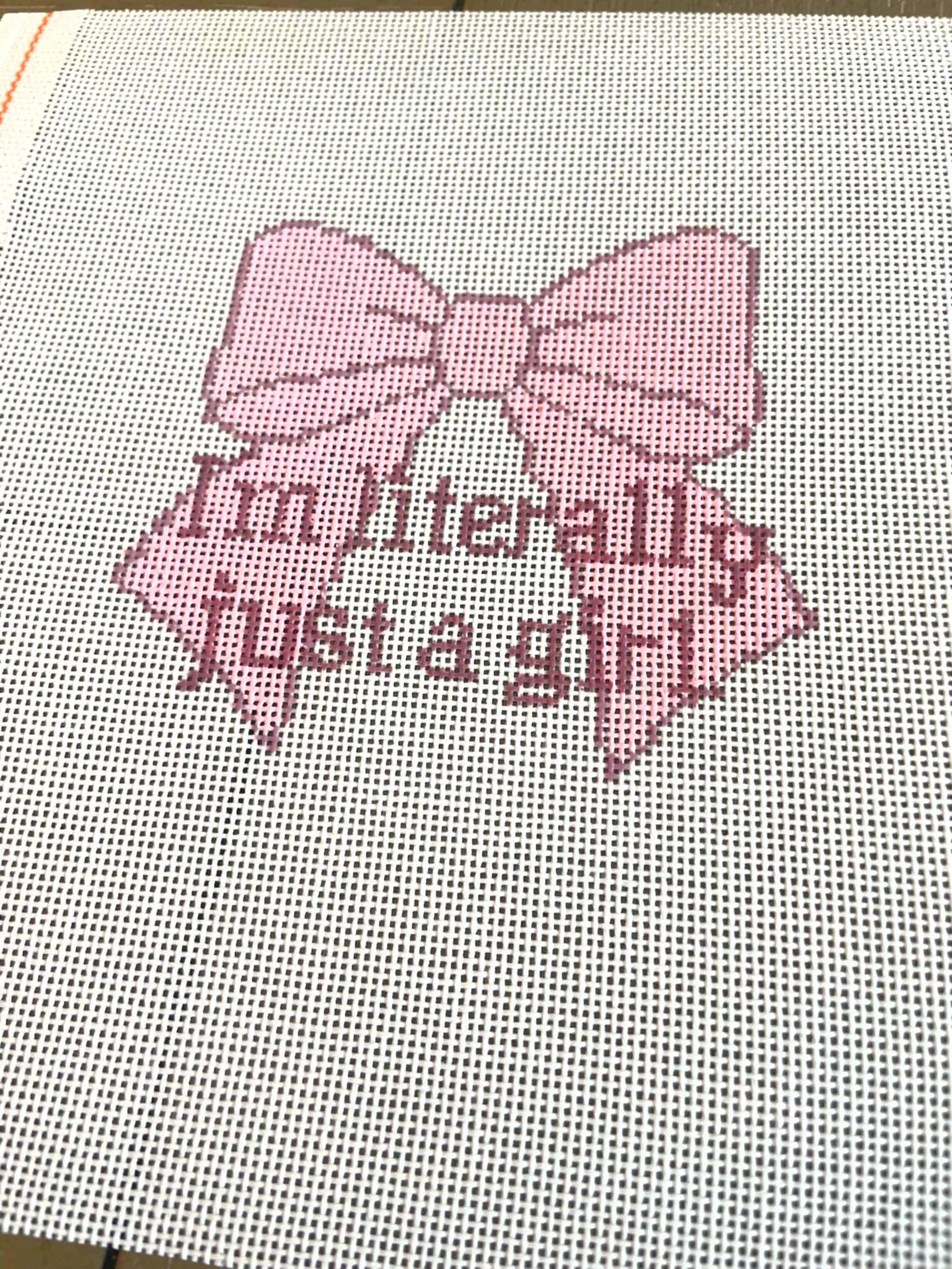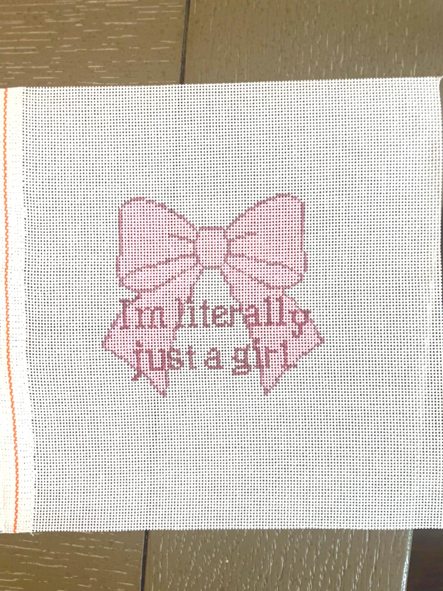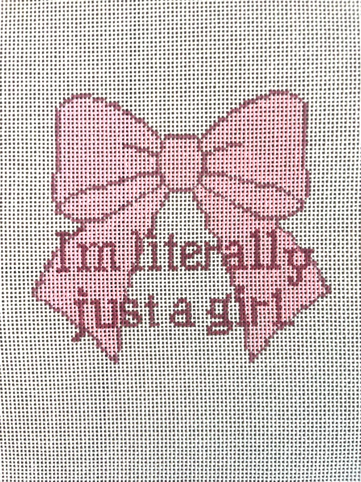 Add a playful and girly touch to your needlepoint projects with this hand-painted “I’m Literally Just a Girl” canvas featuring a bold bow detail. This 4” x 3.75” design is perfect for stitchers of all levels and makes a fun, sassy project or gift.