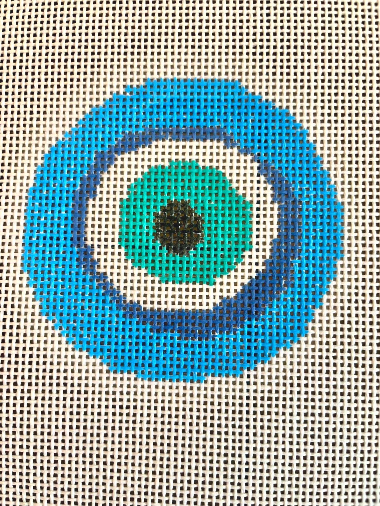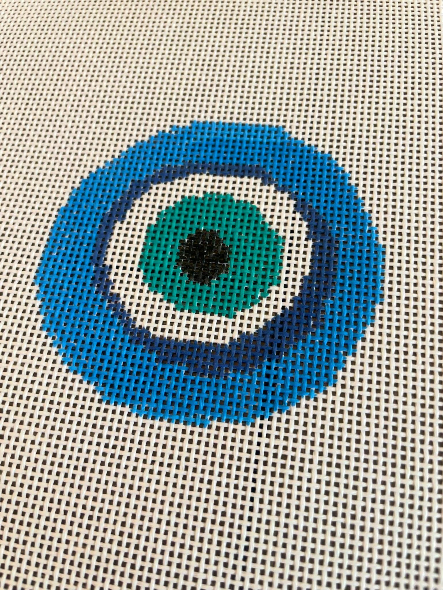 Bring a touch of charm and protection to your needlepoint projects with this hand-painted evil eye canvas. This 3.5” x 3.5” design on 13 mesh canvas is perfect for stitchers of all levels and makes a meaningful DIY project or gift.