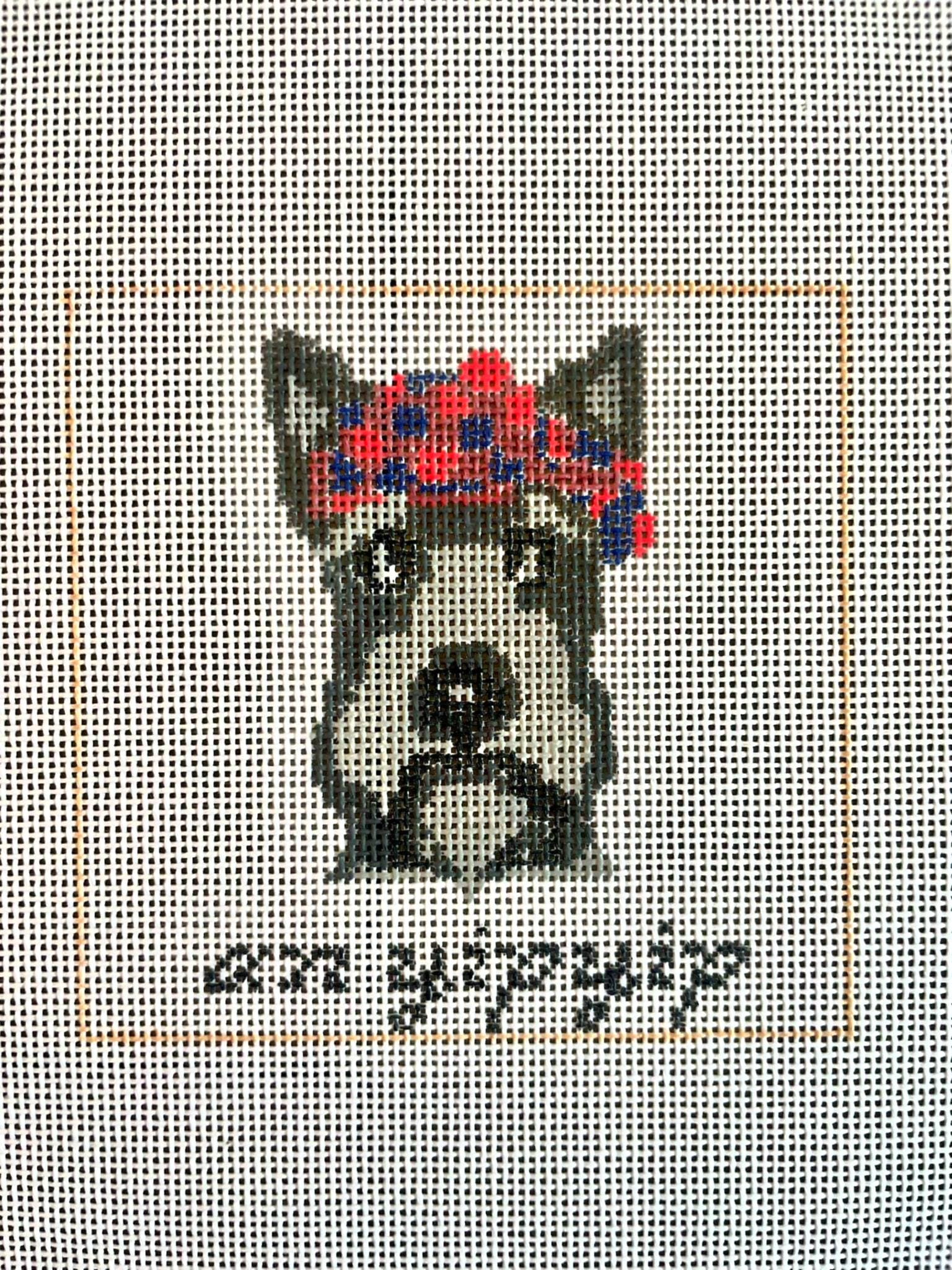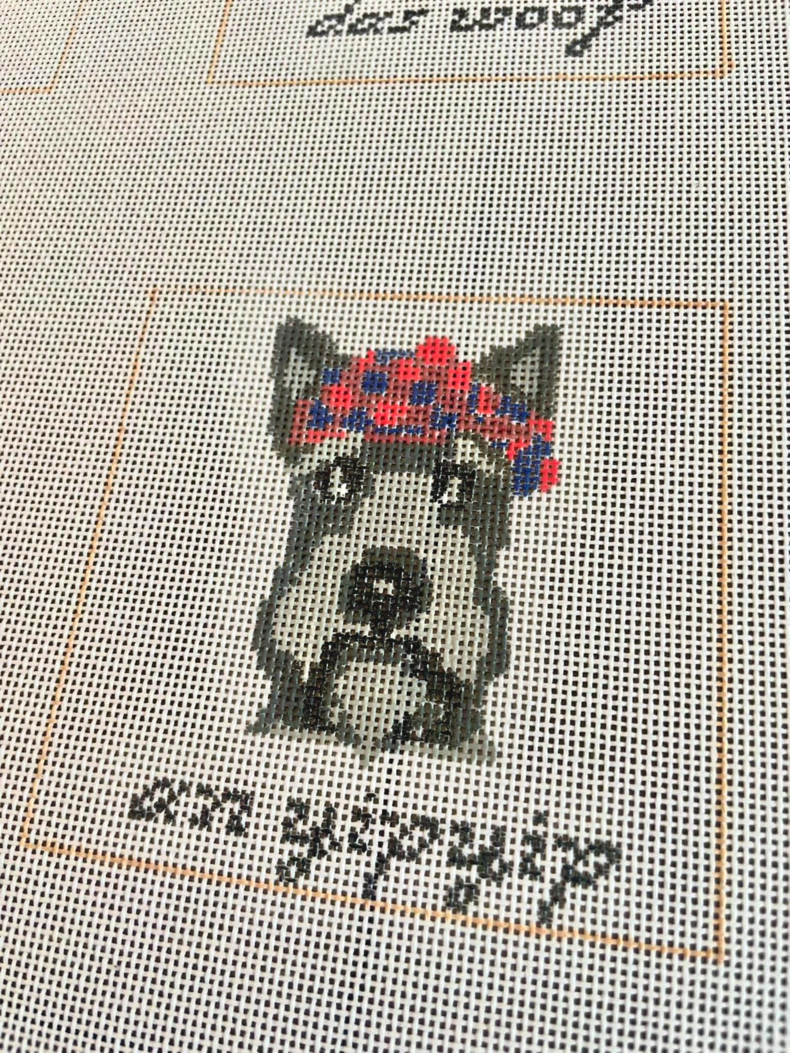 Celebrate your favorite furry friend with this hand-painted Scottish Terrier canvas, featuring the pun “An Yipyip”. Perfect for stitching as a coaster, wall décor, or small gift.