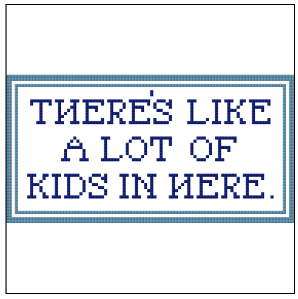 Add some humor and charm to your needlepoint collection with this hand-painted needlepoint canvas! Featuring the funny quote: “There’s like a lot of kids in here.”, this canvas is perfect for stitchers who love fun, modern, and playful designs.