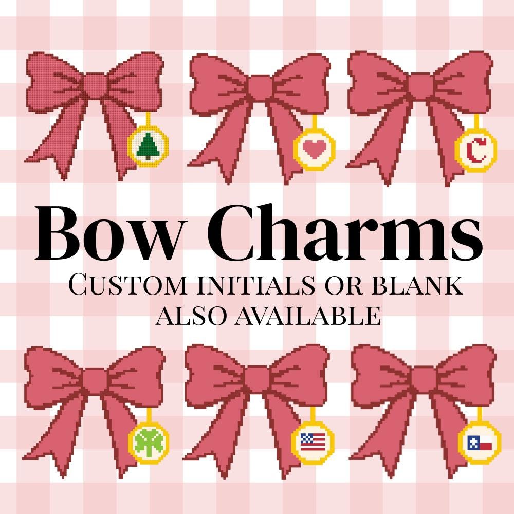Introducing the Bow Charm Collection — a playful and modern series of hand-painted needlepoint canvases featuring a big bow design with a hanging charm. Choose your favorite charm to stitch and make this piece your own!